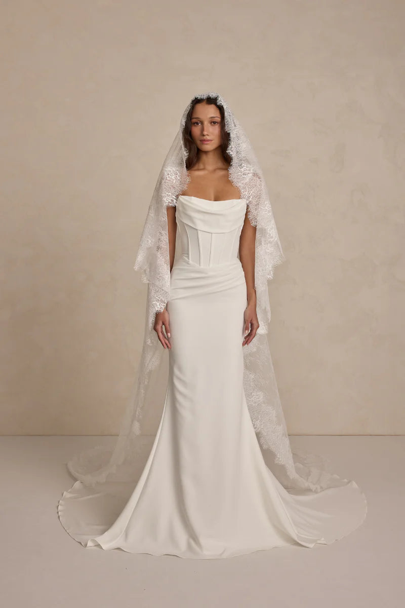 Elegant and architectural, the Knox is a fresh take on timeless sophistication. Featuring a newly developed bodice pattern inspired by our iconic Celine dress, Knox offers a refined silhouette with internal boning for structure and support. A soft, sculptural cowl detail graces the front bodice, adding a touch of modern romance.