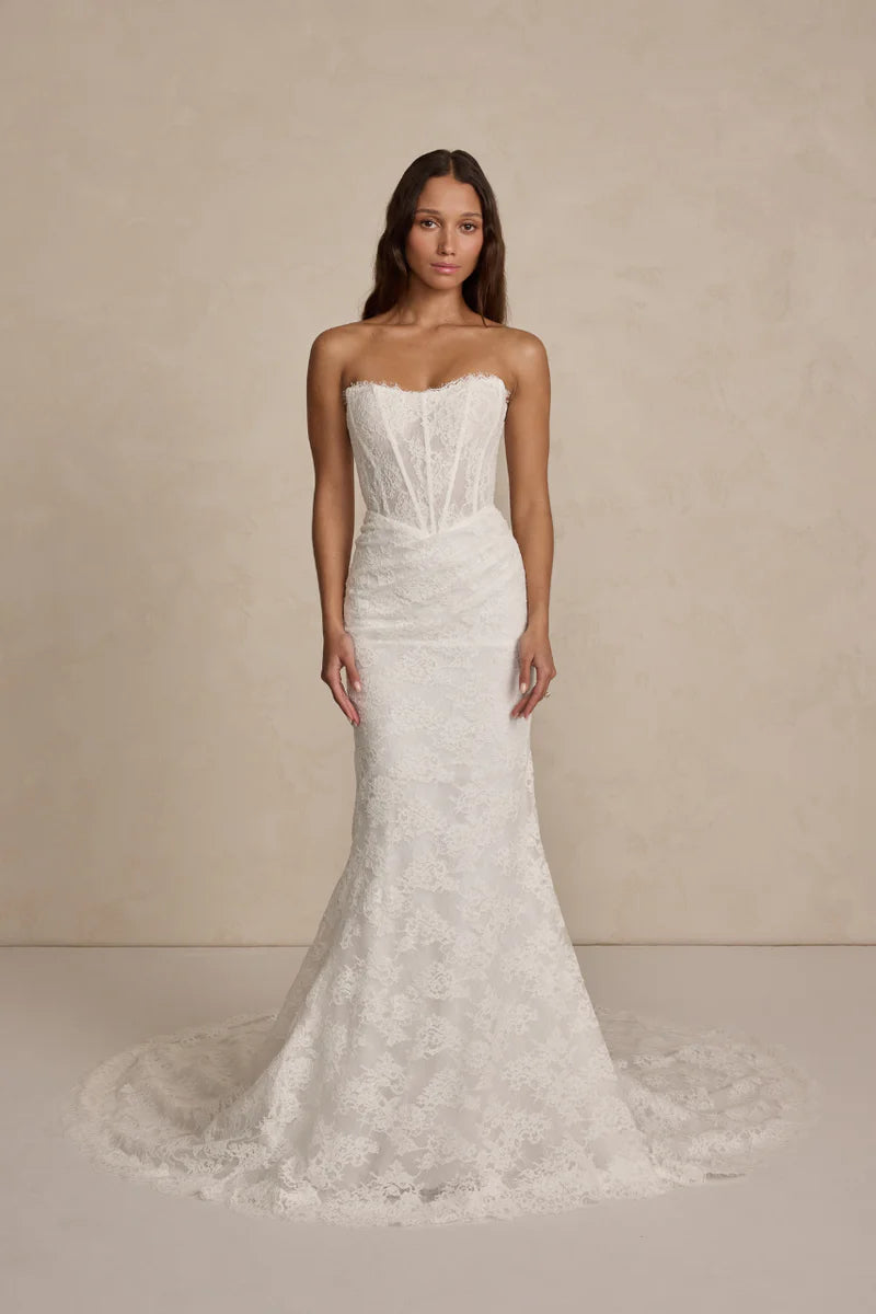 Drawing from the beloved Prim bodice and Rhode skirt, the Romy Dress embraces a silhouette of gentle and purposeful flow. The Prim bodice sculpts the waist with precise craftsmanship, while the Rhode skirt flows smoothly, creating a seamless balance of structure and movement. The dress is an elegant statement - refined, deliberate and unforgettable.